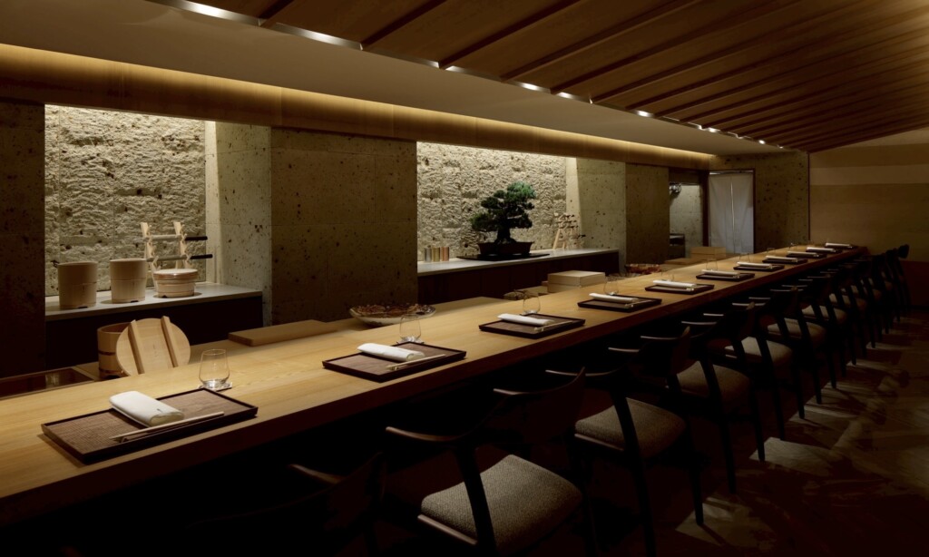 Our luxurious and spacious dining environment is enhanced with carefully selected Japanese aesthetics, including bonsai from Bonsai Town in Saitama.